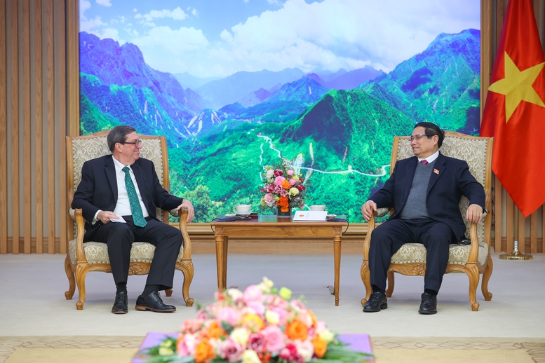 Bộ trưởng Ngoại giao Cuba Bruno Rodríguez Parrilla trân trọng cảm ơn Thủ tướng Chính phủ đã dành thời gian tiếp đoàn; chuyển lời thăm hỏi thân tình của Bí thư thứ nhất, Chủ tịch nước Miguiel Diaz-Canel, Thủ tướng Manuel Marrero Cruz và các Lãnh đạo cấp cao Cuba tới Thủ tướng Chính phủ Phạm Minh Chính và các vị Lãnh đạo cấp cao Việt Nam.