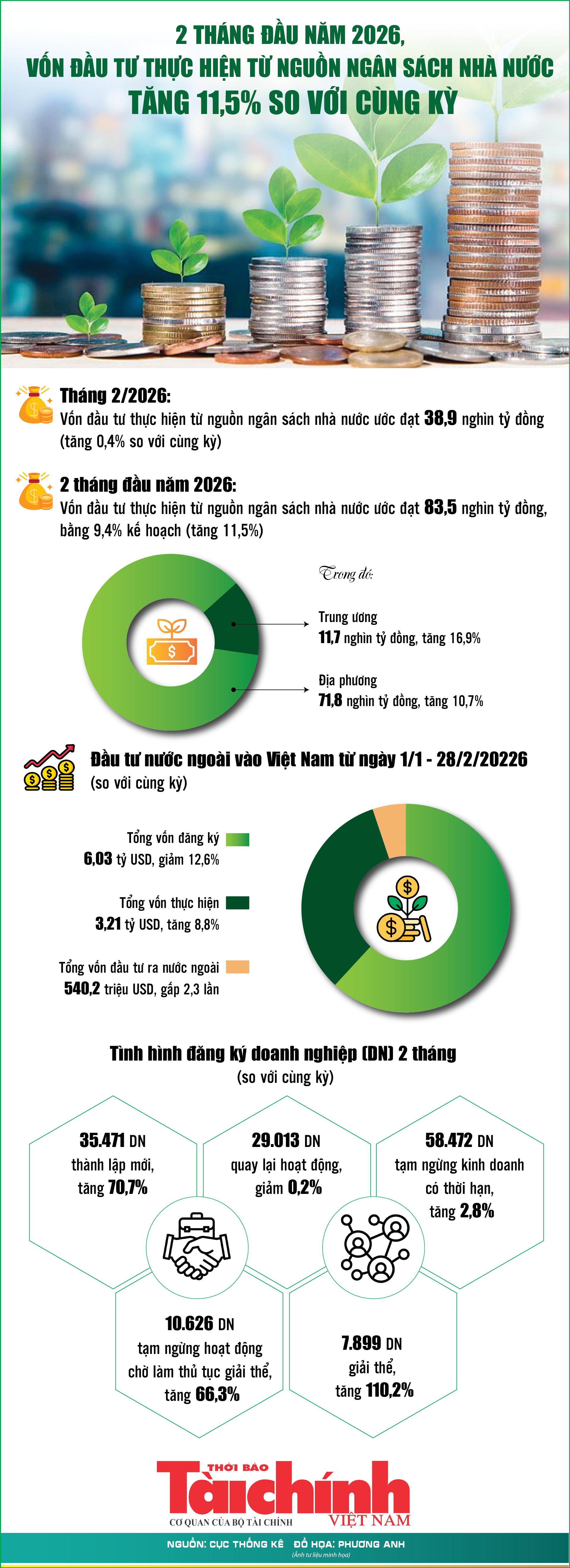 Infographics: 2 tháng, vốn đầu tư thực hiện từ nguồn ngân sách nhà nước tăng 11,5%