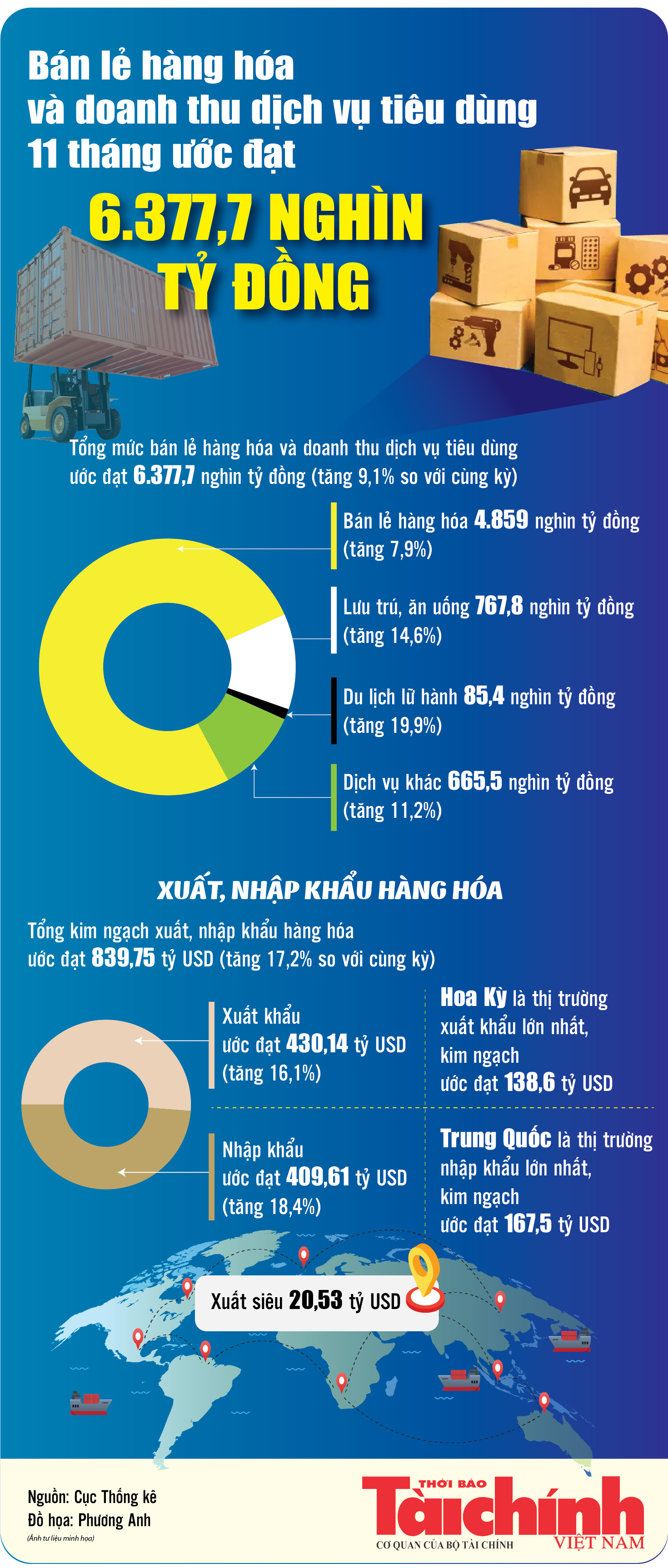 Infographics: Bán lẻ hàng hóa và doanh thu dịch vụ tiêu dùng 11 tháng tăng 9,1%