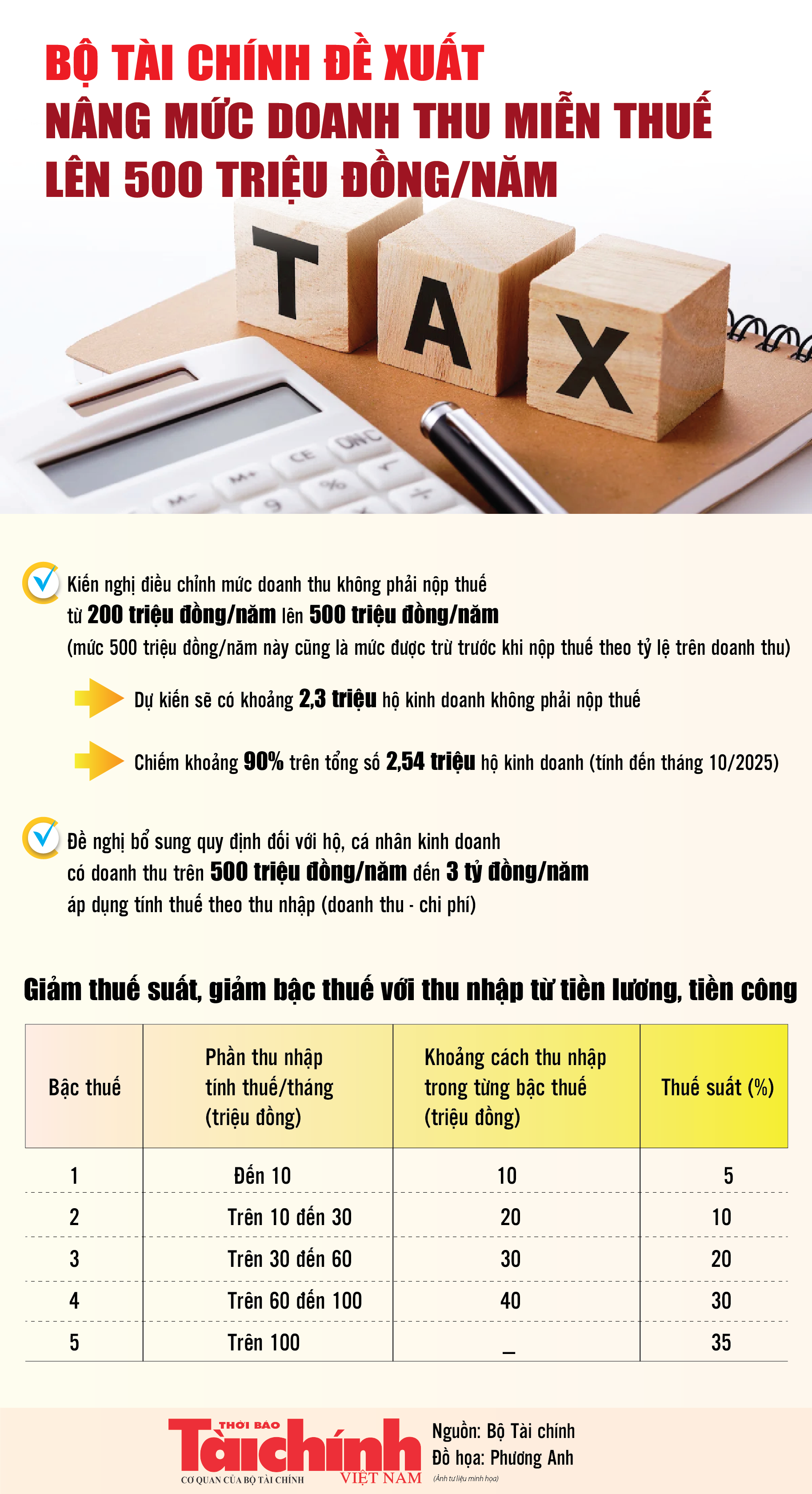 Infographics: Bộ Tài chính đề xuất nâng mức doanh thu miễn thuế lên 500 triệu đồng/năm