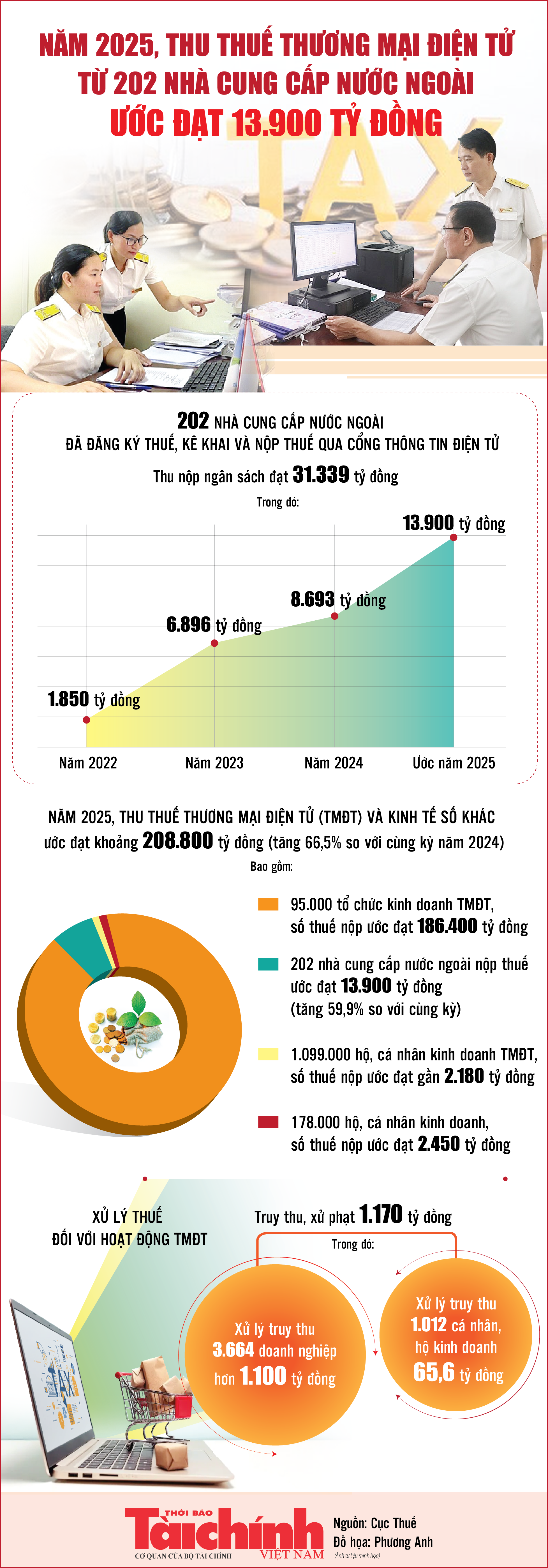 Infographics: Các nhà cung cấp nước ngoài ước nộp 13.900 tỷ đồng tiền thuế trong năm 2025