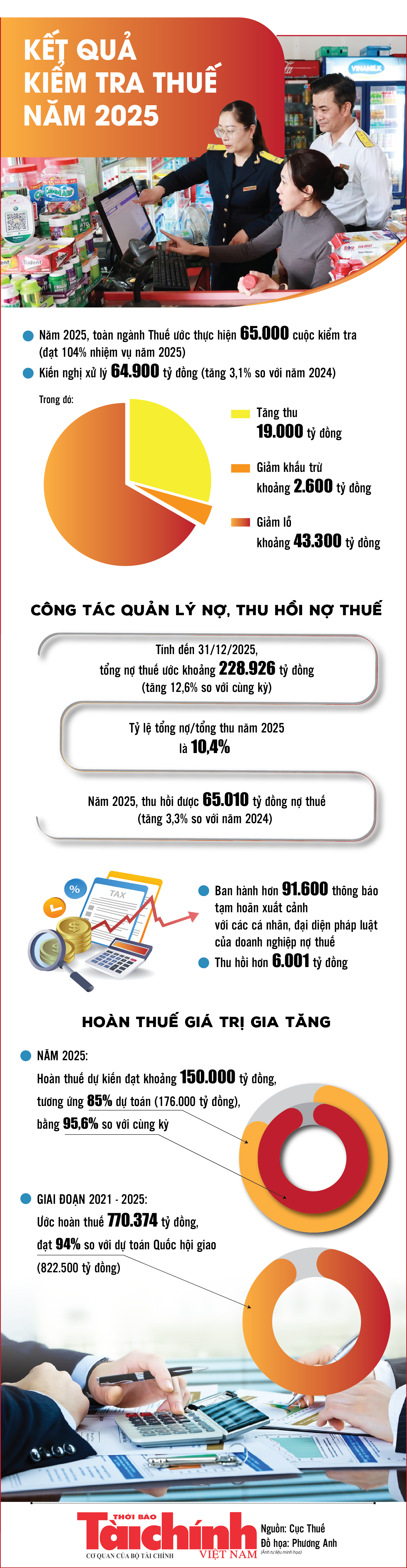 Infographics: Cơ quan Thuế thực hiện 65.000 cuộc kiểm tra trong năm 2025