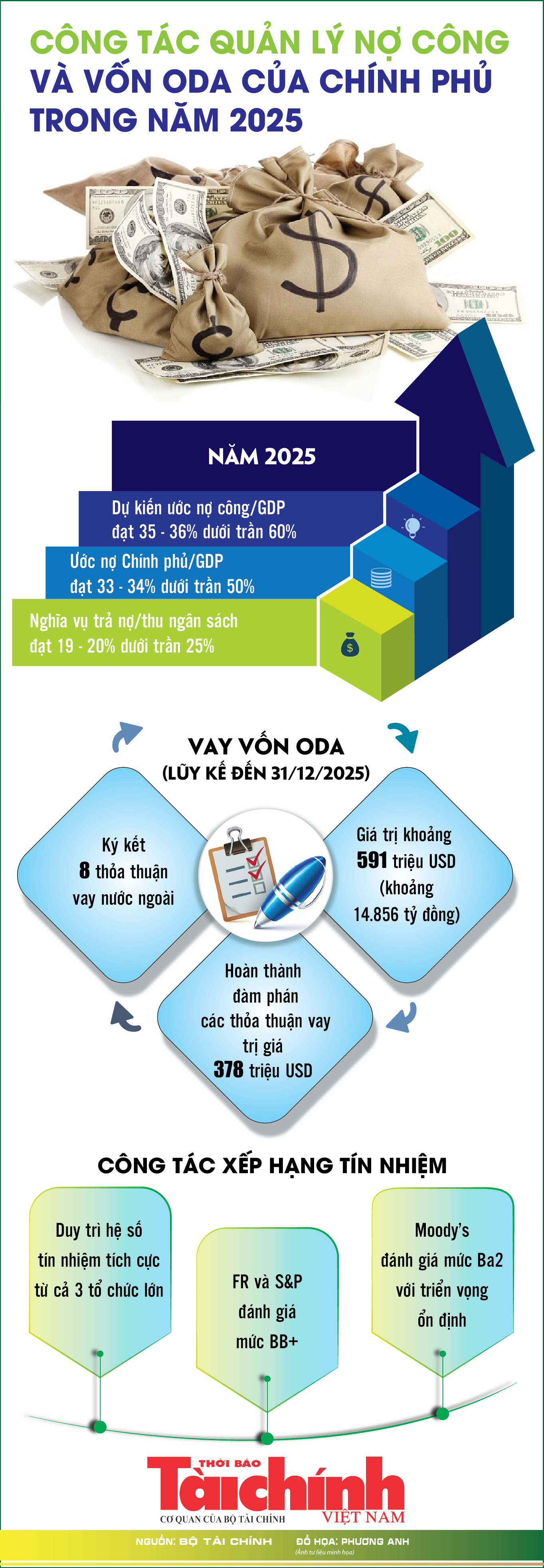 Infographics: Công tác quản lý nợ công và vốn ODA của Chính phủ trong năm 2025