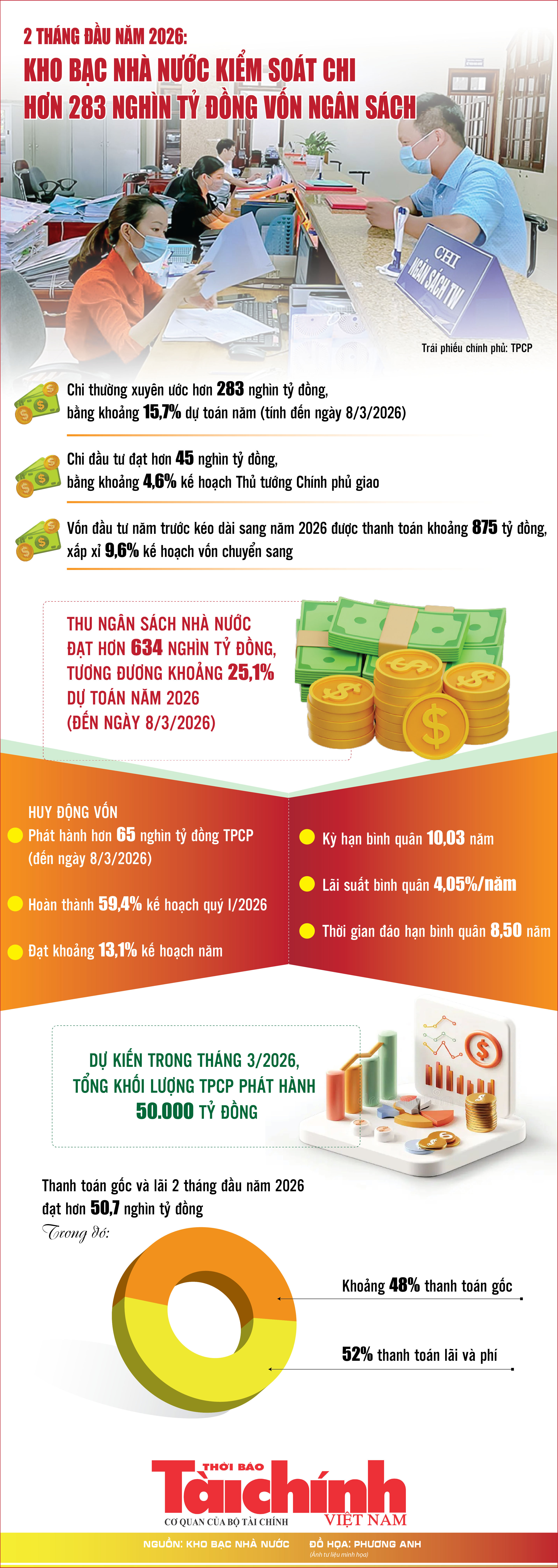 Infographics: Kho bạc Nhà nước kiểm soát chi hơn 283 nghìn tỷ đồng vốn ngân sách trong 2 tháng đầu năm