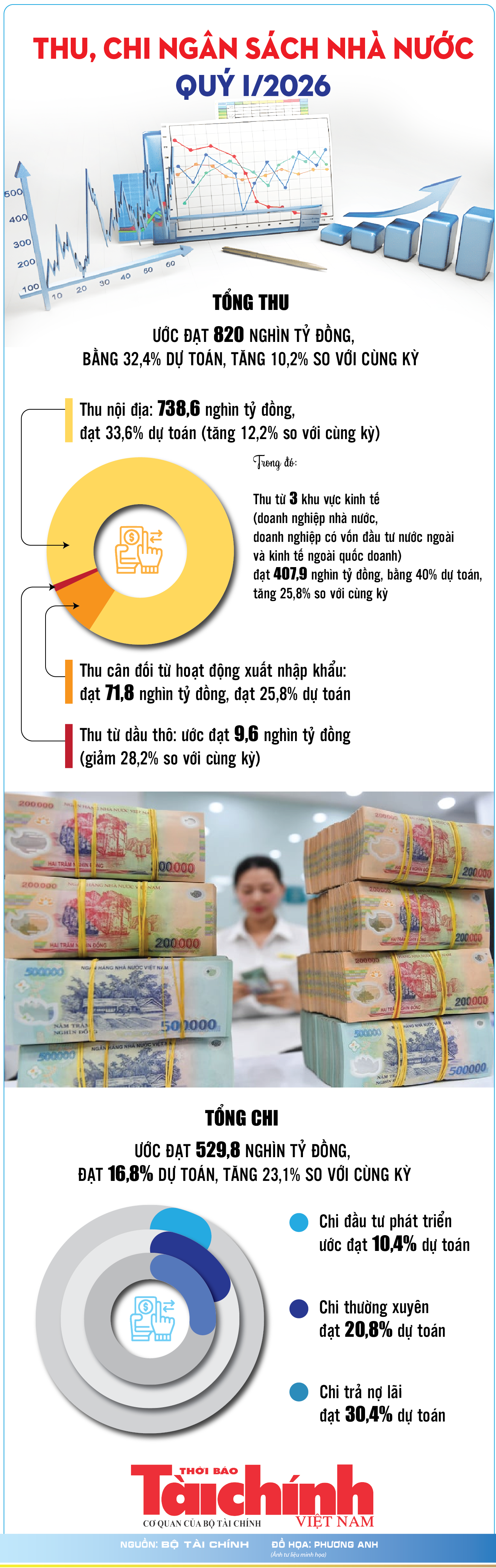 Infographics: Thu, chi ngân sách nhà nước quý I/2026
