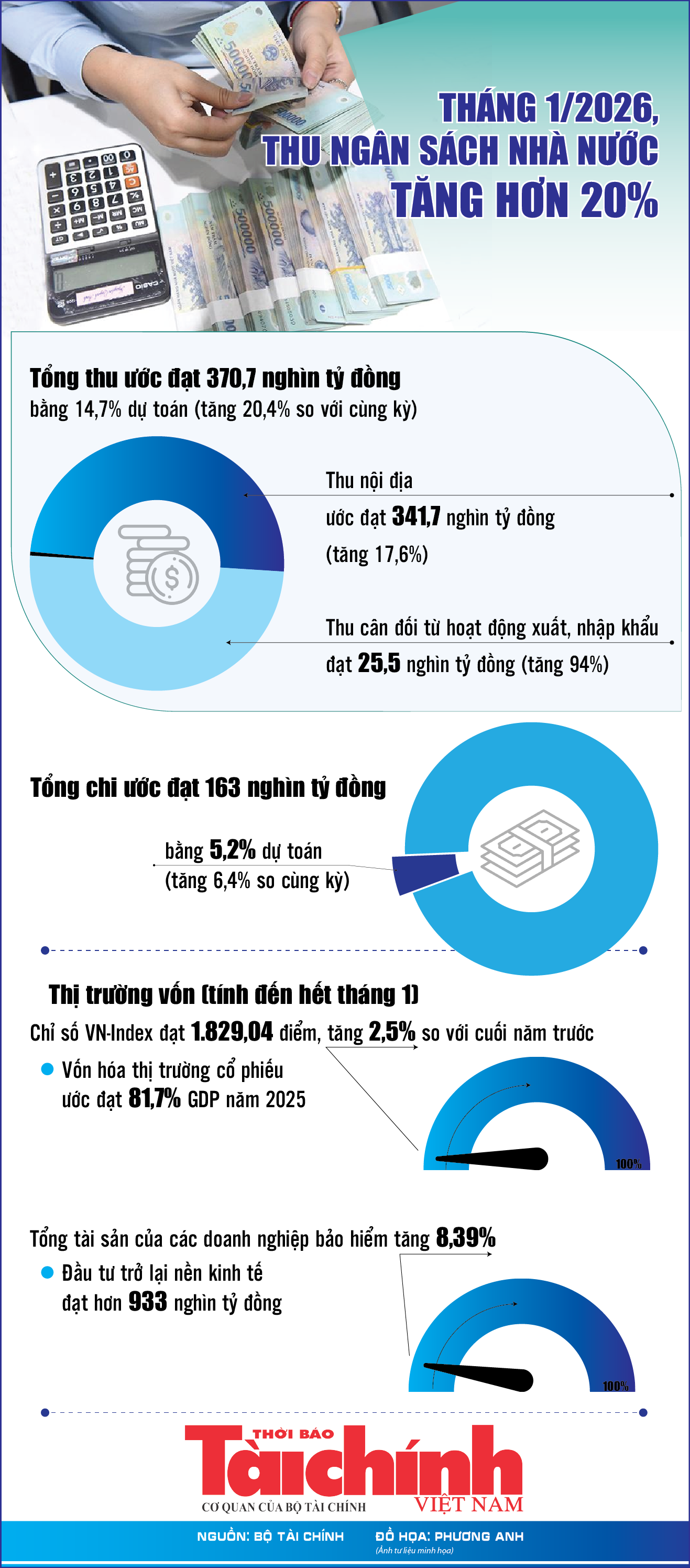 Infographics: Thu ngân sách nhà nước tháng 1/2026 ước đạt 370,7 nghìn tỷ đồng