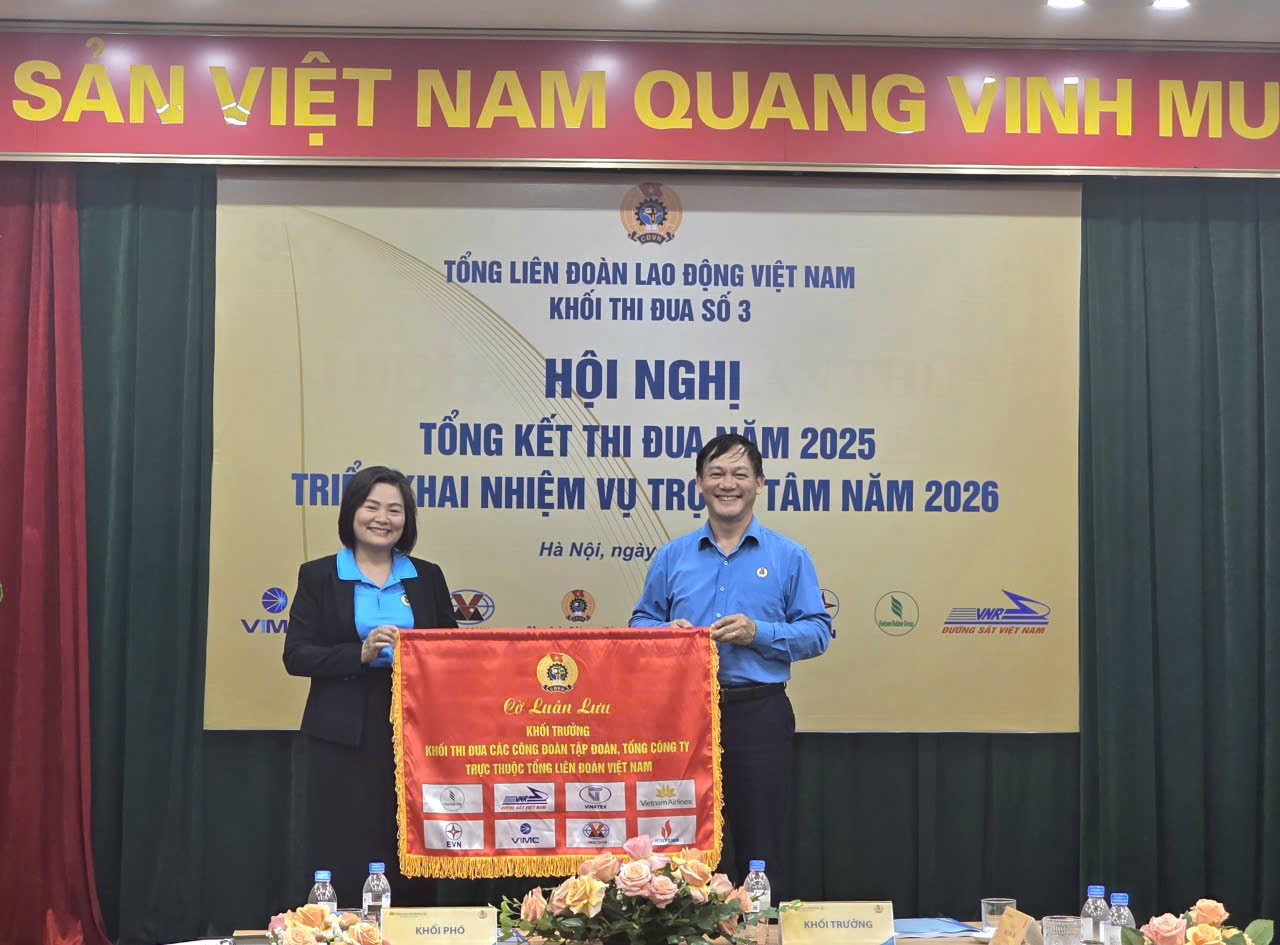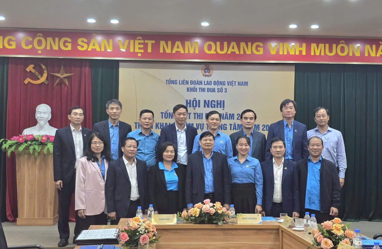 Ngày 5/12, tại Hà Nội, Khối thi đua số 3 thuộc Tổng Liên đoàn Lao động Việt Nam (Tổng LĐLĐVN) đã tổ chức Hội nghị Tổng kết phong trào thi đua năm 2025 và triển khai nhiệm vụ trọng tâm năm 2026.
