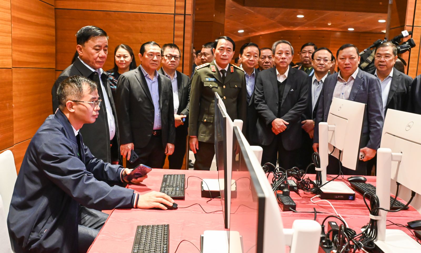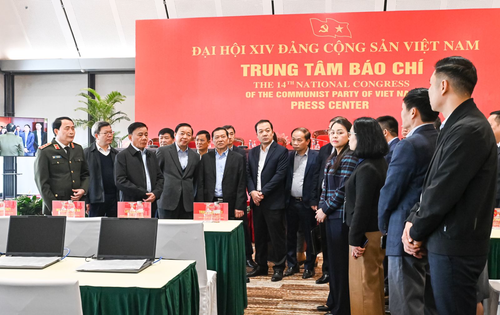 | Đồng chí Thường trực Ban Bí thư Trần Cẩm Tú kiểm tra Trung tâm Báo chí Đại hội XIV. |